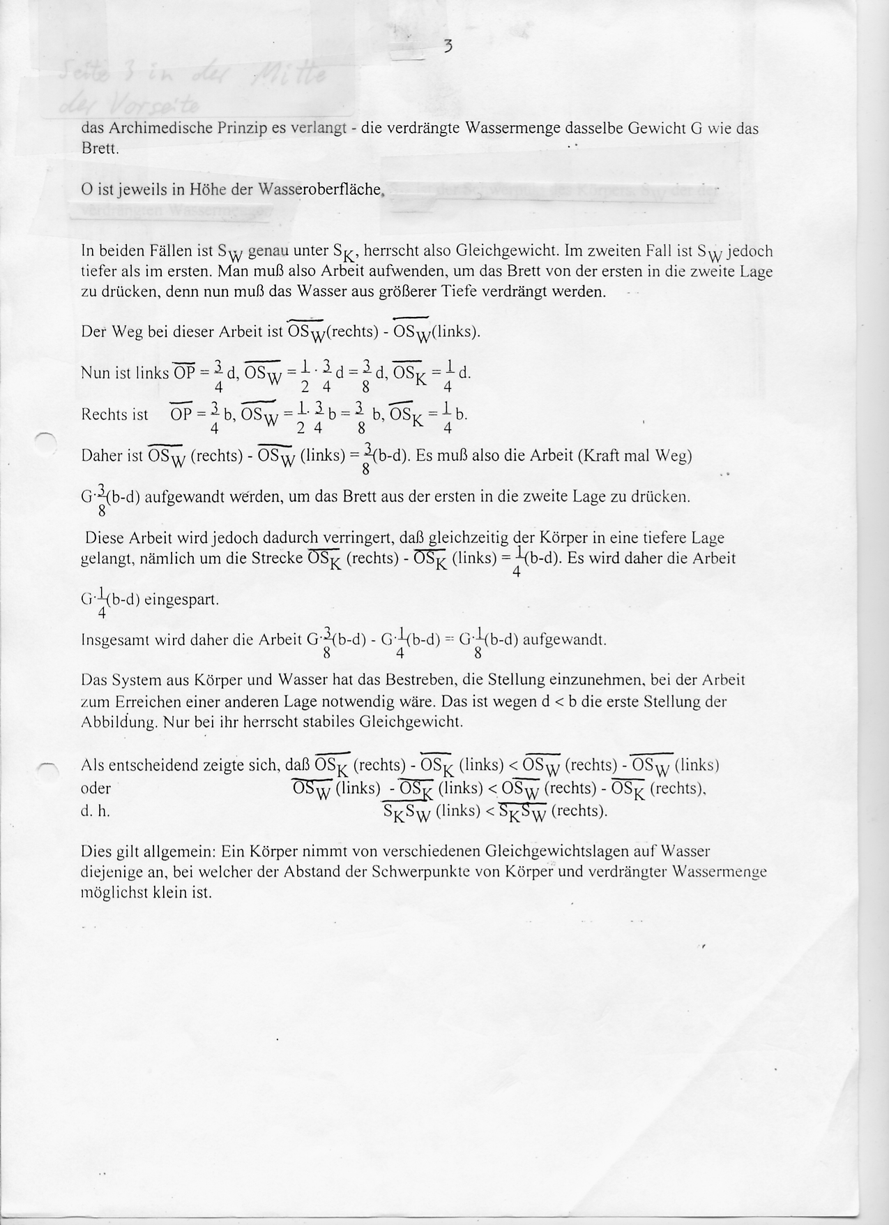 Titel: Überraschend unsymmetrische Schwimmlagen von Holzkörpern in Wasser