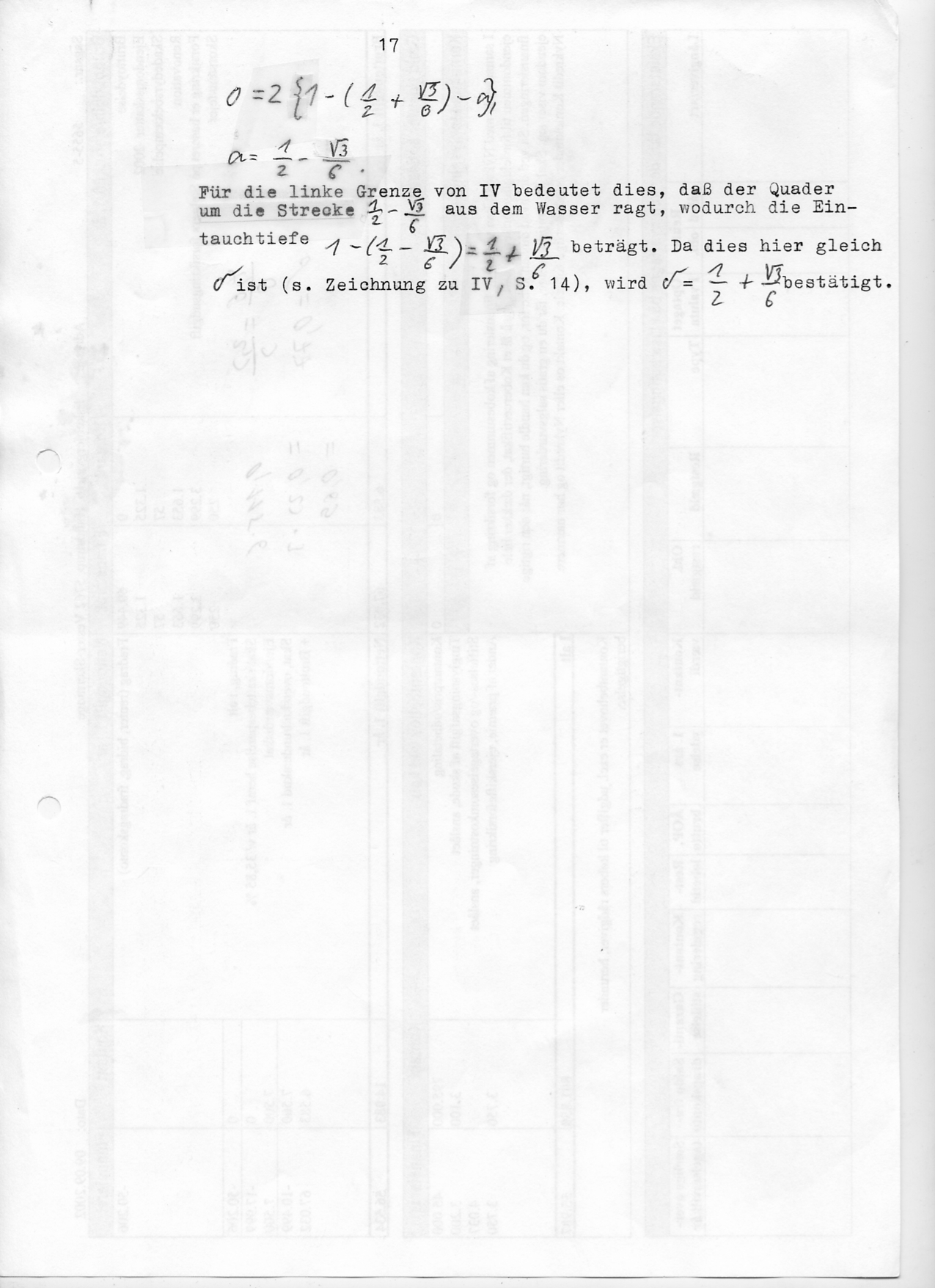 Reinhart Behr: Schwimmquader - II Lösung -